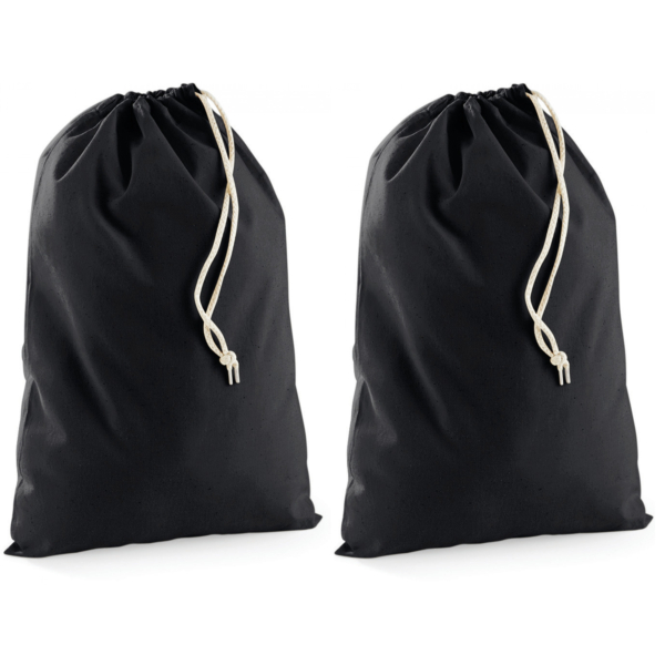 Pakket van 20x stuks zwart katoenen canvas zakjes/tasjes met afsluitkoord 49 x 75 cm